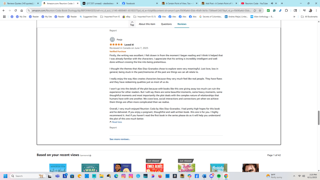 Writer Alex is deeply grateful for reviews like Pooja’s and others on Amazon and personal blogs. They reaffirm that Reunion: Coda has resonated with readers who connected with its story, characters, and themes—something any author hopes for but never takes for granted.