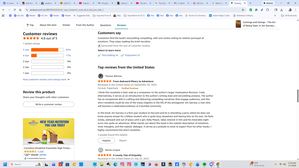 When I finally checked my AOL inbox this morning, I found a note from KDP confirming that the revised Kindle and paperback editions of Comings and Goings are officially updated. The changes—along with the new pricing—should be live within the next 72 hours, depending on how quickly everything propagates. That’s a relief. At least now I can stop fretting over the little fixes and know the novelette is in solid shape.