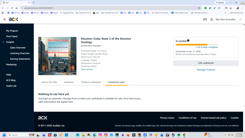On the creative front, though, the weather isn’t the only thing brightening my day. This morning brought a genuine jolt of excitement: real, tangible progress on the audiobook QA review for Reunion: Coda. At 8 AM, ACX cleared the metadata review—no hiccups, no curveballs. An hour later, the audio files passed their inspection with flying colors. Now only the final check remains between my debut novel and its Audible debut. If I sound a little extra caffeinated, that’s why.