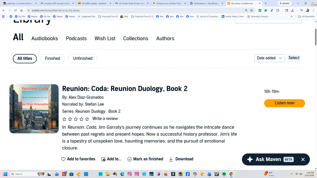 What really surprised me was the preview Audible chose. Of all the scenes in Reunion: Coda, they picked the moment in The Moonglow Club — the one where Maddie looks at Jim across the table they’re sharing and asks him to dance. Hearing that performed hit me harder than I expected.