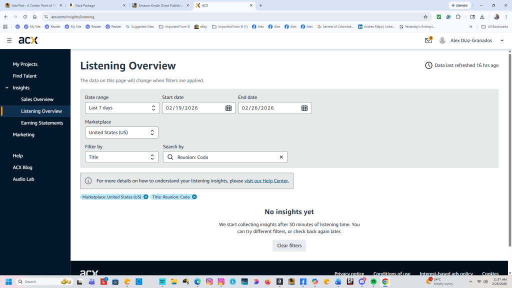 Still, it’s only been two days since Reunion: Coda landed in the Audible catalog. Maybe listeners simply haven’t realized it’s now available through their monthly plans. “Hope springs eternal”—which really should be the official motto of indie authors everywhere.