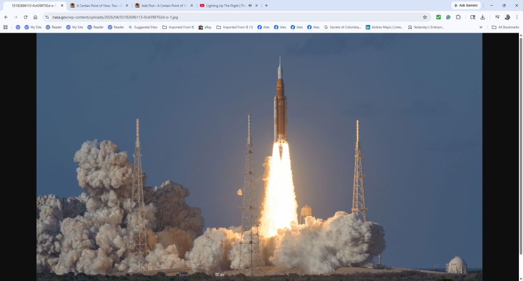 Last night, as I stood in my backyard in Bithlo, I witnessed my very first space launch in person. At 6:35 PM EDT, NASA’s Space Launch System (SLS) booster thundered off Cape Canaveral, carrying the Orion spacecraft skyward. Living about 40 miles west‑southwest of Kennedy Space Center has its perks, especially when the skies cooperate. Thanks to mostly clear conditions, I saw the long white plume trailing behind Artemis II’s booster rockets and caught a fleeting glimpse of the brilliant flame as the first stage climbed toward Earth orbit — the opening chapter of humanity’s first crewed Moon mission since December 1972. If only backyard barbecues came with such celestial entertainment.